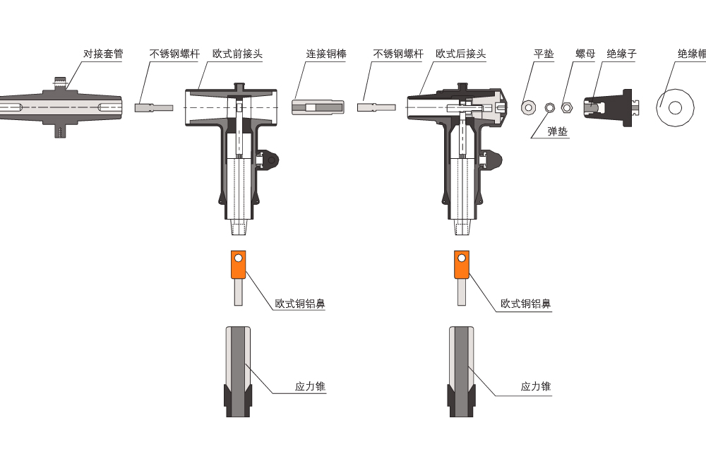 歐式電纜分接箱是近年來廣泛用于電力配網(wǎng)系統(tǒng)中的電纜化工程設(shè)備,它的主要特點是雙向開門、利用穿墻套管作為連接母排,具有長度小、電纜排列清楚、三芯電纜不需要大跨度交叉等顯著優(yōu)點。其所采用的電纜接頭符合 DIN47636 標(biāo)準(zhǔn)。一般采用額定電流 630A 螺栓固定連接式電纜接頭。