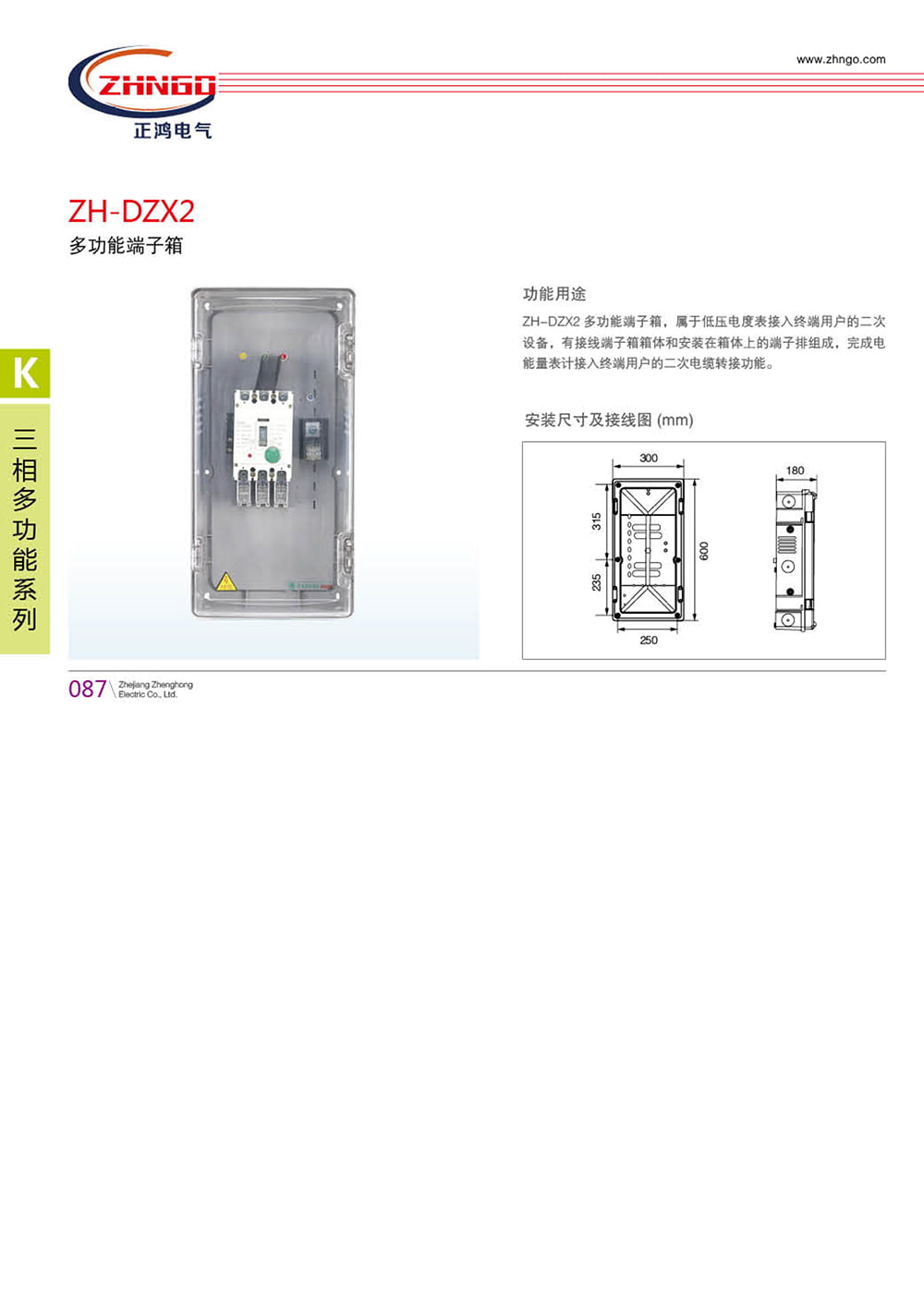 ZH-DZX2 多功能端子箱,屬于低壓電度表接入終端用戶的二次設(shè)備,有接線端子箱箱體和安裝在箱體上的端子排組成,完成電能量表計接入終端用戶的二次電纜轉(zhuǎn)接功能。